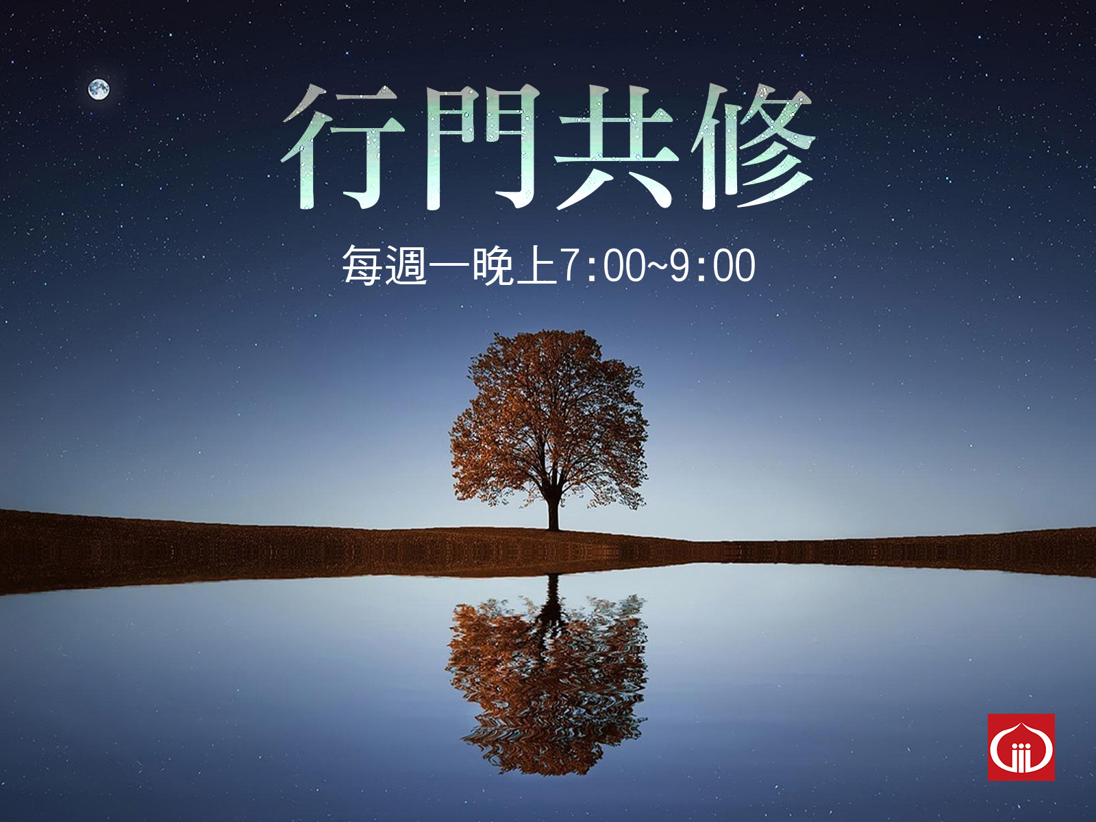 每週例行共修第一週:誦在家菩薩戒、研入菩薩行第二週:禪坐、研今生解脫第三、四週:誦無量壽經、研法華經最後一週:大迴向